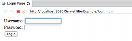 Now when we will run our application, we will get response pages like below images. [](https://journaldev.nyc3.cdn.digitaloceanspaces.com/2013/08/Servlet-Filter-Login.png) [](https://journaldev.nyc3.cdn.digitaloceanspaces.com/2013/08/Servlet-Filter-Login-Success.png) [](https://journaldev.nyc3.cdn.digitaloceanspaces.com/2013/08/Servlet-Filter-Checkout.png) If you are not logged in and try to access any JSP page, you will be forwarded to the login page. In the server log file, you can see the logs written by servlet filters as well as servlets.